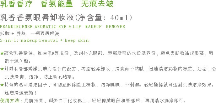 | 产品系列 | 乳香香氛 | 产品名称 | 乳香香氛眼唇卸妆液 |
